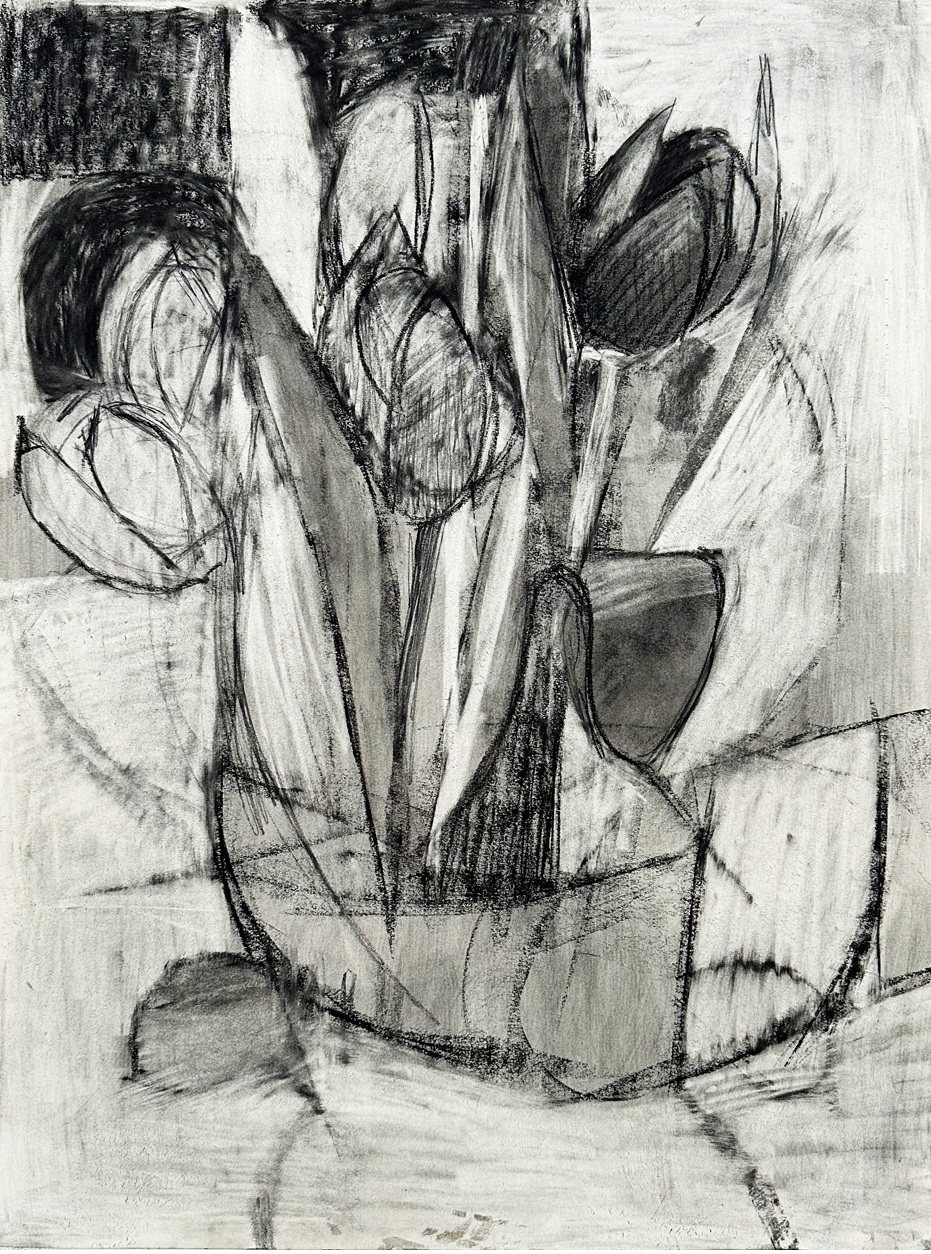 Tulips Drawing 1, charcoal on paper, 24x18 in